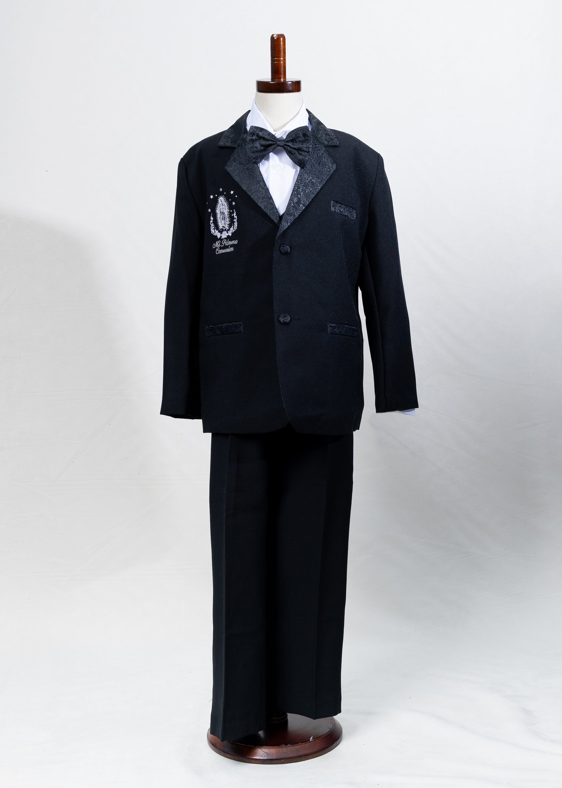Primera communion black suit, bow tie, white shirt, black vest, black pants
